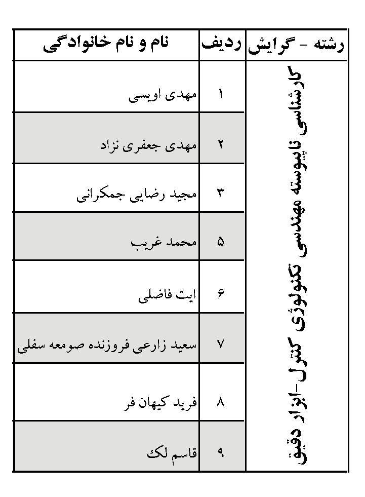 مهندسي تكنولوژي كنترل- گرايش ابزاردقيق