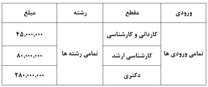 حداقل پرداختی علی الحساب دانشجویان در سال تحصیلی 1405-1404 به شرح ذیل می باشد: