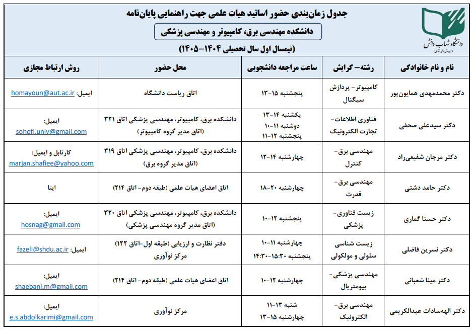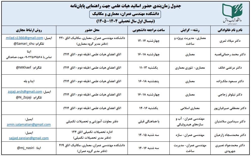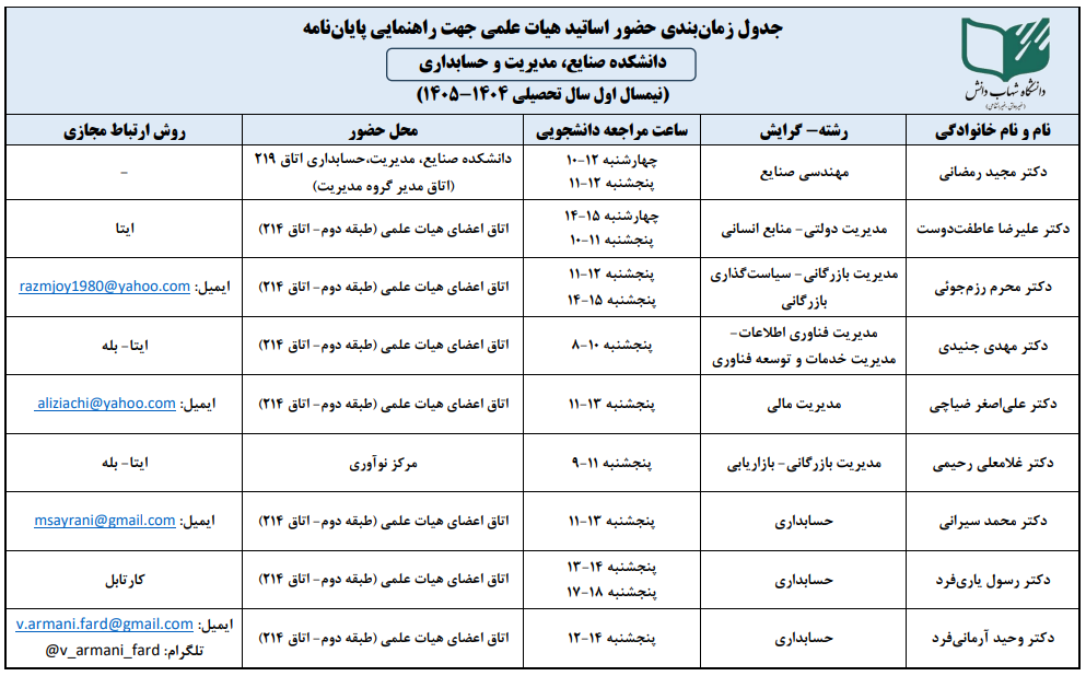 جدول زمانبندی حضور اساتید